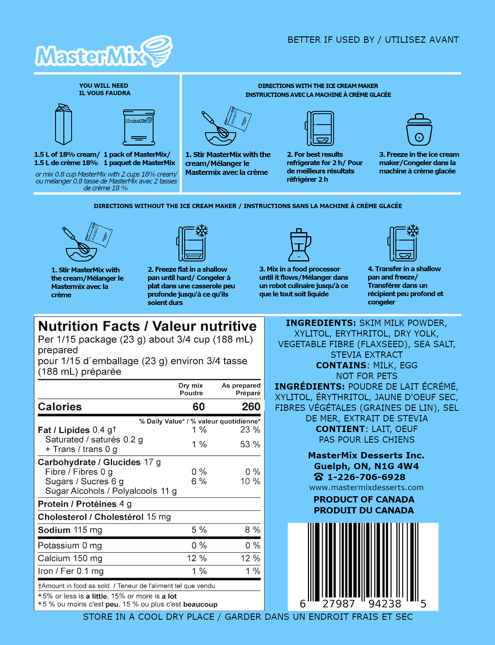 MasterMix Original makes a better-for-you version of an all-time favourite dessert that you can indulge in and feel good about. MasterMix does not contain any added refined sugars and is sweetened with a perfectly balanced blend of natural low-calorie sweeteners that are known not to cause a spike in blood sugar levels.